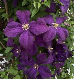 Mélylila, nagy, csillag alakú virágok, akár 10–15 cm átmérővel.