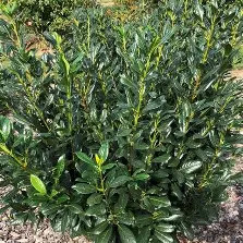 • Megjelenés: Sűrű, tömött, oszlopos–kompakt növekedésű örökzöld cserje. Levelei nagyok, bőrneműek, fényes sötétzöldek. Tavasszal fehér, gyertyaszerű virágfürtöket hoz.