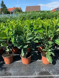• Megjelenés: Nagy, sötétzöld, fényes, bőrszerű levelek; sűrű, tömött habitus. Tavasszal fehér, illatos fürtvirágzatot hoz.