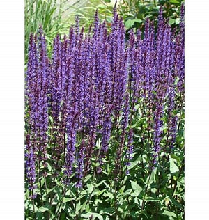 • Megjelenés: A ‘Caradonna’ 50–70 cm magas, karcsú, oszlopos habitusú évelő. Jellegzetessége a sötétbordó-fekete virágszár, amelyen tömött, mélylila virágok nyílnak. Levelei keskenyek, illatosak, enyhén ráncos felületűek. A növény modern és természetes kertekben is erőteljes látványelem.